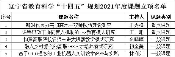 根据《辽宁省教育科学规划课题管理办法》的有关规定,经辽宁省教育科学规划领导小组审批,我校5项课题获辽宁省教育科学“十四五”规划2021年度课题立项,其中重点课题2项,一般课题3项。