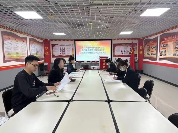 现代服务系党支部会议现场