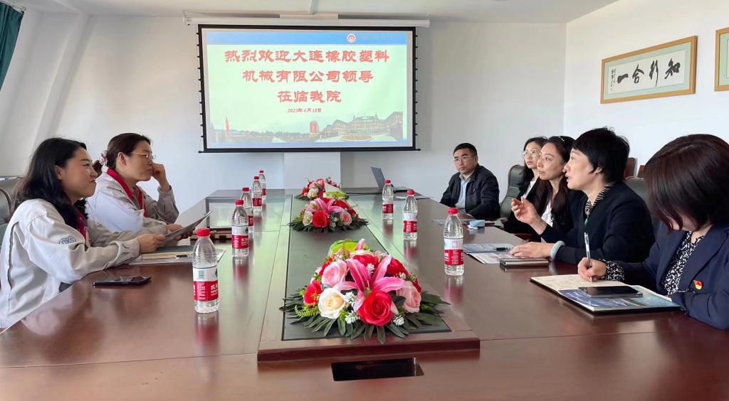 4月18日,大连橡胶塑料机械有限公司人力资源部李婷部长和招聘部王水部长受邀来访我院进行考察座谈,学院党委书记申秀梅、装备技术系、信息工程系院系负责人出席座谈。