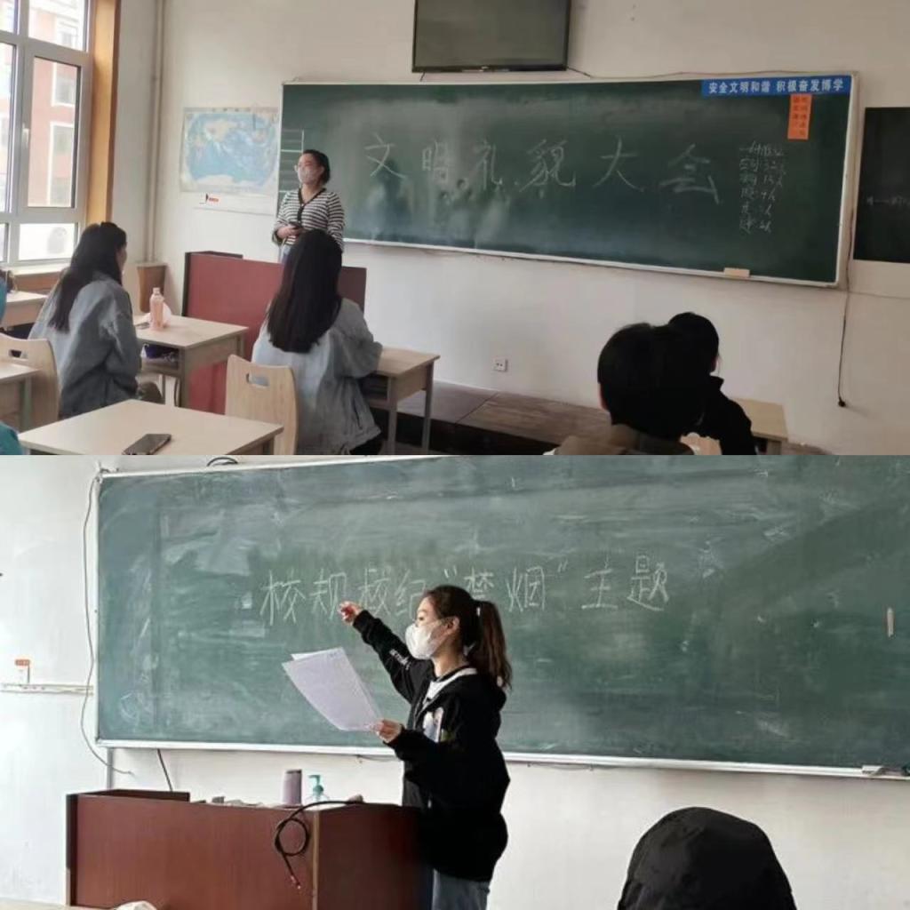 为增强班级凝聚力,刘樱、牛晓宇老师分别召开了“文明礼仪主题班会”及“校规校纪禁烟主题班会”,明确学院校规校纪,促进学生身心健康发展,为师生共创良好校园氛围奠定了坚实基础。
