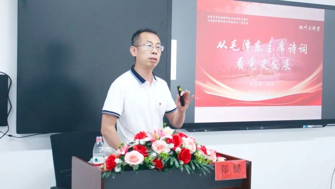 郑健以“从毛泽东主席诗词看党史发展”为题,重点围绕毛泽东主席的七首诗词带我们重温了跌宕起伏的革命征途和波澜的党史。以诗言志、以诗咏怀、以诗记史,党课以史鉴今,充分将诗词与时政结合,帮助师生提升思想政治觉悟。