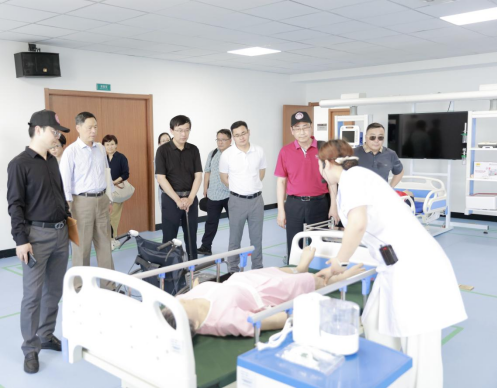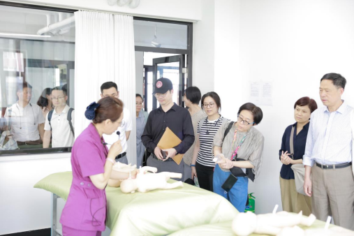参观校医院、护理专业实训室时,专业教师展示了先进的设备设施及专业特色,参访领导予以高度评价。