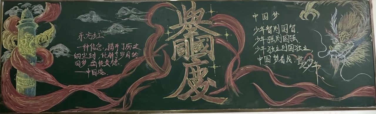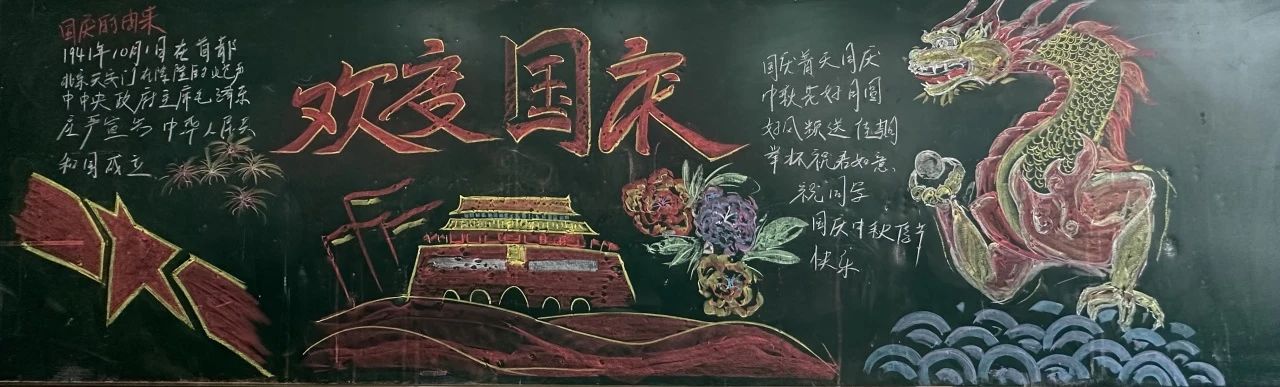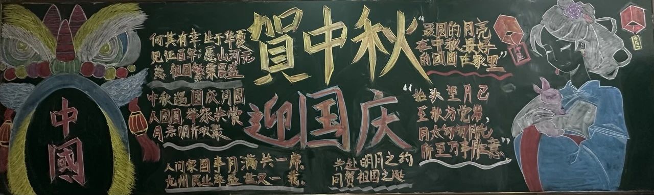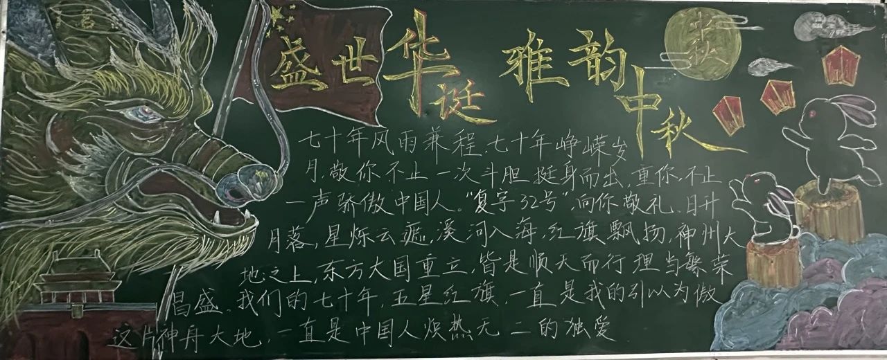 板报评比活动中,同学们认真准备、密切协作,精心策划,从资料收集、版面设计、书写、绘画等方面都严格把关,制作出一幅幅主题鲜明、内容丰富、图文并茂的黑板报作品。把对祖国与传统节日的爱化作了一句句火烈的语言和一幅幅明艳的图画,定格在丰富多彩的黑板报上。