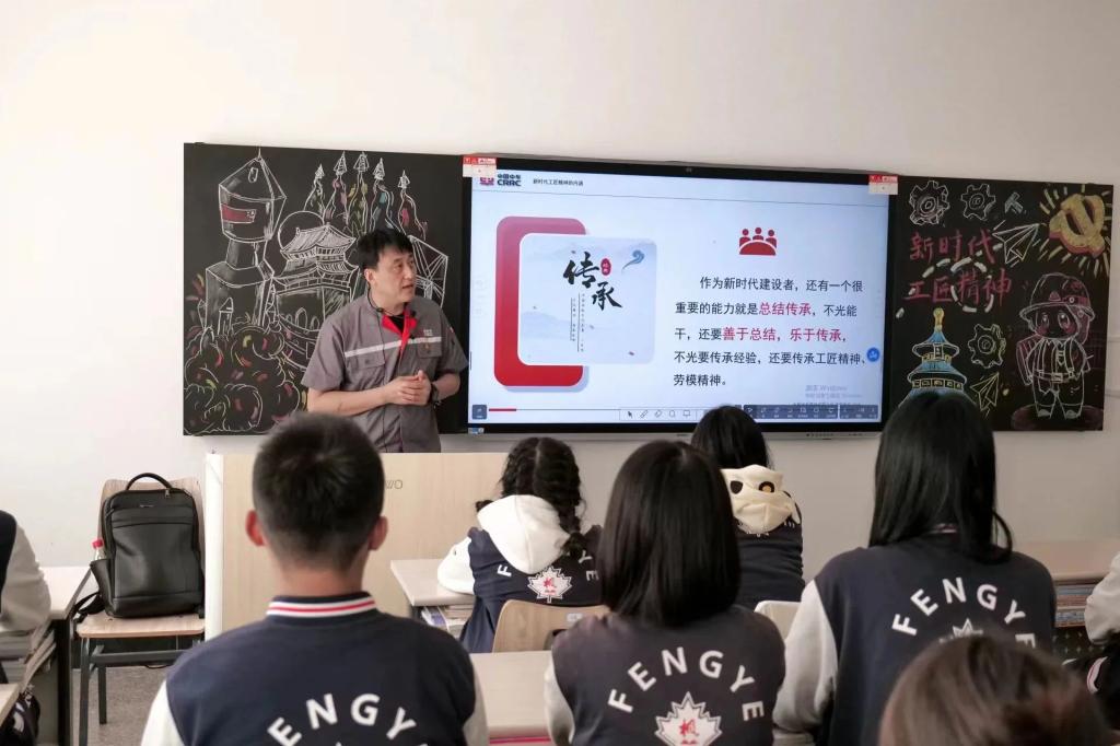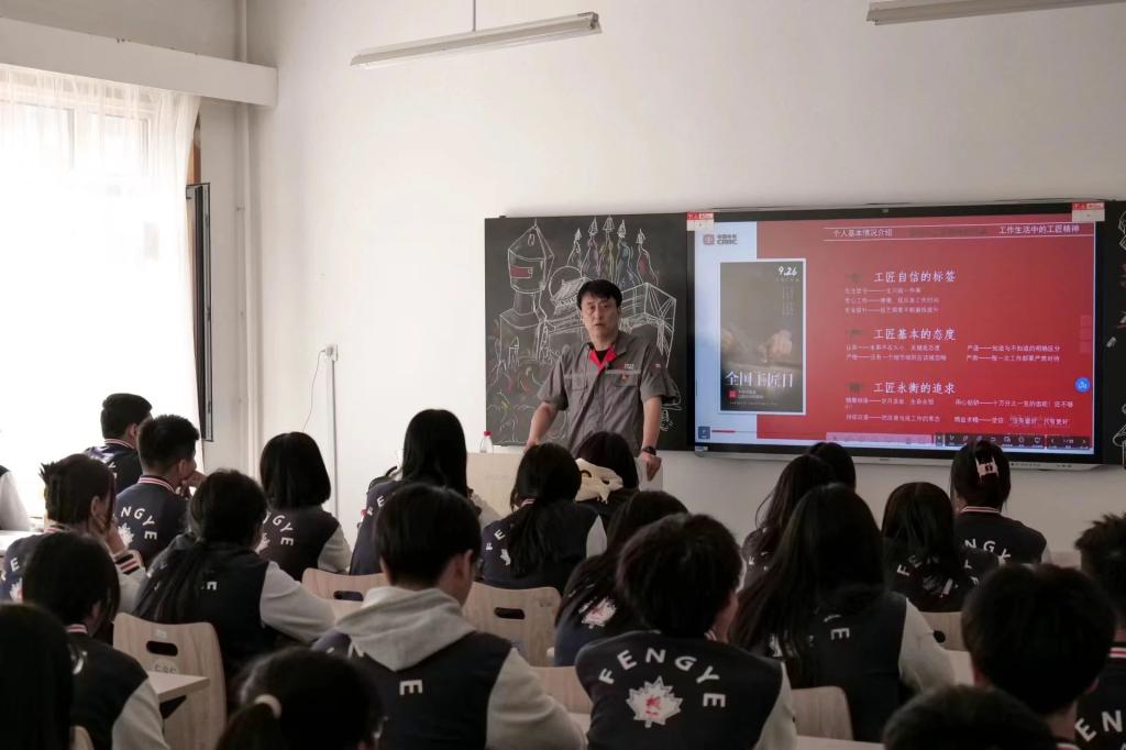初永春提到,专注是工匠精神的关键,标准是工匠精神的基石,精准是工匠精神的宗旨,创新是工匠精神的灵魂,完美是工匠精神的境界,人本是工匠精神的核心。让学生深刻感受到要具备工匠精神,技能可以强国,只有努力钻研,不怕困难,才能报效祖国。