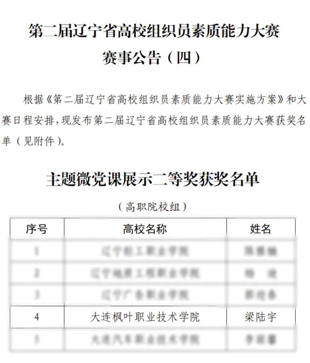 为全面贯彻党的二十大精神,推进落实新时代党的建设总要求和新时代党的组织路线,10月15日-16日,由中共辽宁省委教育工委、辽宁省教育厅主办、大连海事大学承办的第二届辽宁省高校组织员素质能力大赛正式拉开帷幕。比赛设置党务基础竞赛、主题微党课展示、工作方案策划和党务工作情景模拟环节。学院选派梁陆宇、蔡宏亮、张玲玲三位组织员参加比赛,经过激烈角逐,梁陆宇同志在主题微党课展示环节顶住压力、披荆斩棘,荣获个人二等奖。