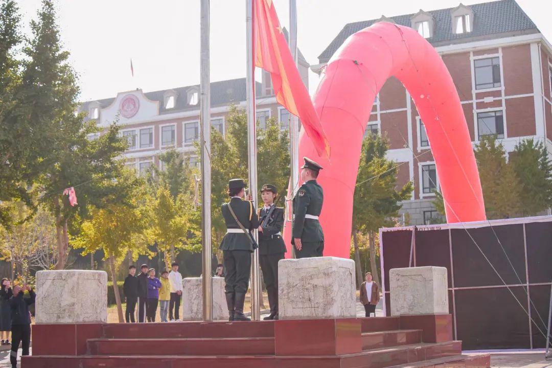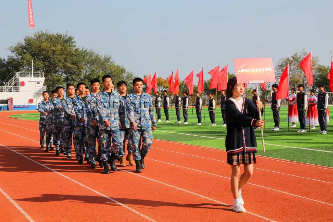 全体师生并立操场,面向国旗矗立的高台,向国旗行注目礼,向祖国传递最真挚的热忱,向祖国奉献最纯洁的礼赞。音落,大连枫叶职业技术学院董事长兼院长杨捷代表学校对“新港杯” 首届国防体育运动锦标赛的胜利召开表示热烈的祝贺,对精心筹划运动会的工作人员表示诚挚的感谢,并向全体运动员、裁判员致以亲切的问候和美好祝愿。