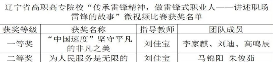 辽宁省高职高专院校思想政治理论课建设联盟组织开展了“传承雷锋精神做雷锋式职业人--讲述职场雷锋的故事”微视频比赛活动。学院积极组织马克思主义学院教师积极参赛,通过专家评审,马克思主义学院思政课教师刘佳宝老师带领两队分别获得一等奖和二等奖。进一步彰显了学院立德树人成果及办学效果,使之成为“大思政课”落细,落小、落实的有效途径,成为“大思政课”体系中有温度有情怀,最生动、最有感染力的“行走的课堂",不断发挥思政课立德树人关键课程作用。
