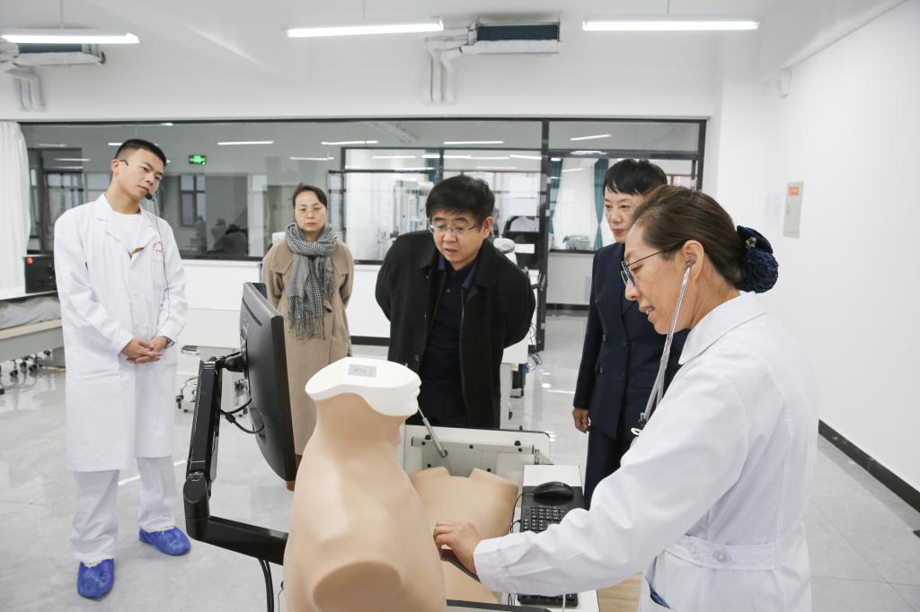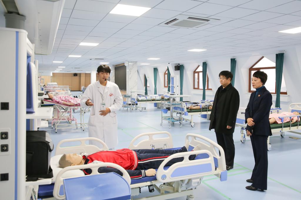 赵满一行先后来到校医院内科、外科、中医科、妇科、口腔科、超声科、放射科等地逐一参观调研,在枫叶图书馆,赵满详细了解了馆藏情况及智慧图书馆内党建阵地建设情况,对学院以党建引领,以学生为本,坚持着力培养更多新时代需要的高素质技术技能人才发展方向给予了充分肯定。