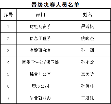 经过精彩而激烈的角逐,两场比赛最终7名选手晋级决赛,名单如下: