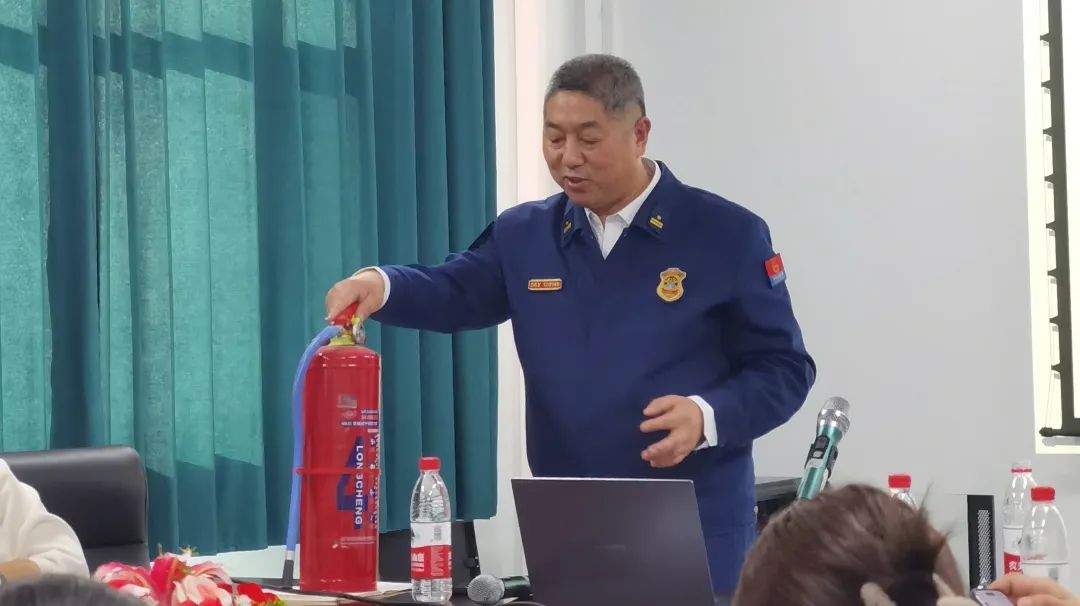 培训中,韩警官根据自己26年消防工作管理经验,从防火知识学习、防火检查要领、灭火疏散要素、掌握逃生技巧方法等开始讲解,对消防单位主体责任落实,防火责任划分进行了讲解,对如何树立公共消防意识、提高消防管理人员的“四个能力”进行了解读。韩教官又根据学校的安全环境和现有条件,结合典型火灾亡人案例,为各位老师讲解安全用电、安全用气、安全操作安全逃生等方面的知识技能;告诫宿舍管理人员要经常对消防通道进行检查,教育学生不能私拉私接电线,安全门不能上锁封闭等;辅导员要教育引导好学生在寝室不使用大功率的用电设备,寝室内不吸烟、不使用明火等;餐厅、教室、寝室一旦遇到突发火情,一定要沉着冷静,灭火人员要在有防护的情况下进行有效灭火,如果火势较大无法扑灭时,要立即报警,迅速通知周围人员撤离火场,撤离过程中要走楼梯,不能乘坐电梯,找有光亮的地方逃生。