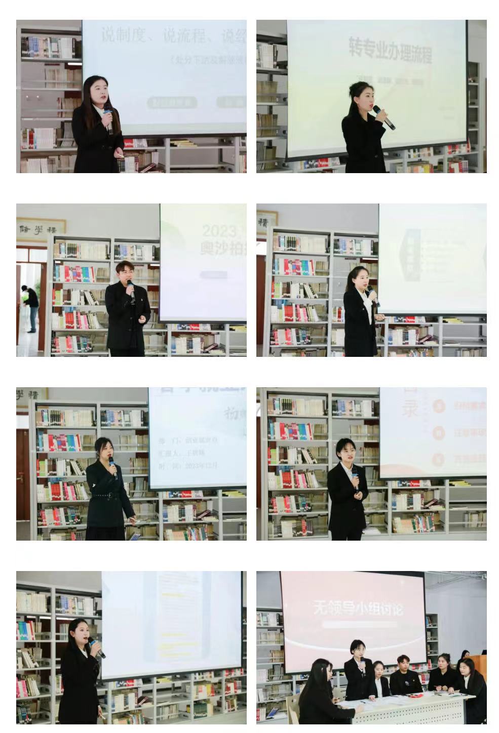 为深入贯彻落实党的二十大精神,扎实推进学习贯彻习近平新时代中国特色社会主义思想主题教育走深走实,进一步引领行政人员强化服务意识,提升履职能力,以讲提能练内功、以述促干强本领。12月19日,在图书馆二楼举行首届行政人员“说制度、说流程、说方法、说经验”决赛,院长助理张冬冬、院长助理高成林、马克思主义学院院长/医养康护系主任王珊、现代服务系主任闫博、人事处处长徐辉出席本次大赛并担任评委。
