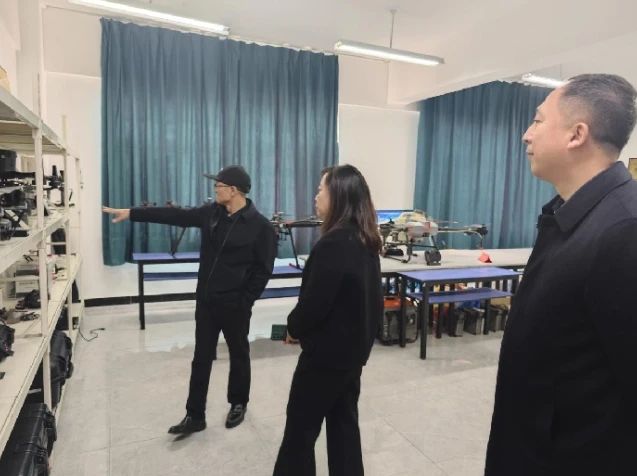 紧接着,领导们来到了充满科技氛围的无人机产业学院。在这里,张明院长为区委领导详细介绍了无人机的应用及其技术革新。他强调,无人机的广泛应用不仅显著提高了工作效率,降低了人工成本,而且在科研、救援、安防、植保、教育等多个领域都带来了革命性的变革。领导们对无人机产业学院的科研实力和应用前景给予了高度评价,并期待我校在无人机技术方面取得更多突破。
