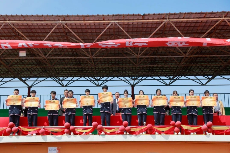 学院领导为获奖团队和个人颁奖。党委副书记金晓晖致闭幕词,她对参与运动会的全体运动员、裁判员、工作人员和老师们表达了感谢与敬意,充分肯定了他们的辛勤付出和无私奉献,同时她高度赞扬了全体师生在运动会期间展现出的拼搏、团结和挑战精神。她指出枫叶精神的底色是奋斗,2024年是学院的改革之年,全体枫叶人应不忘初心,继续以奋斗为底色,坚韧不拔、踔厉奋发、勇毅前行。