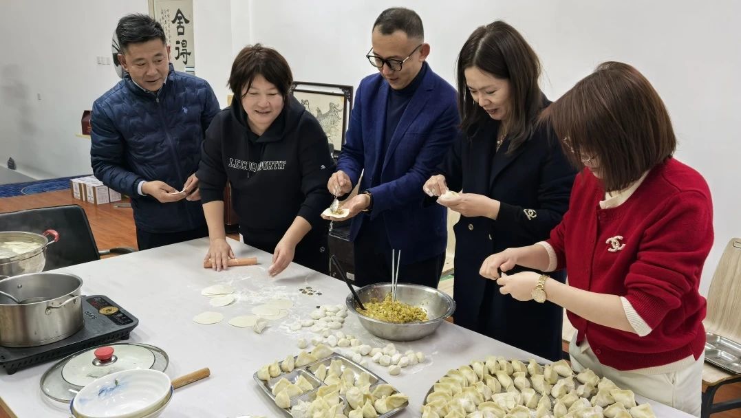 为了让大家更加深切地感受到节日的氛围,杨萍董事长、杨捷院长还与教职工们一起动手包饺子。随着馅料、面粉等饺子制作材料被一一搬上餐桌,大家围坐在一起,分工明确,配合默契。现场欢声笑语不断,洋溢着温馨、祥和的节日气息。
