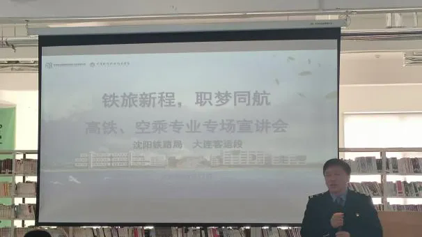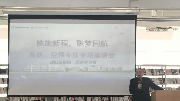 会后,沈阳铁路局大连客运段一行于我院图书馆4楼为学生带来一场精彩纷呈的宣讲会。劳人科科长张文超、副段长李宏有分别介绍了企业的发展历程、企业文化、岗位需求及职业发展前景,激发了同学们的浓厚兴趣。宣讲会现场气氛热烈,同学们纷纷表示收获颇丰。