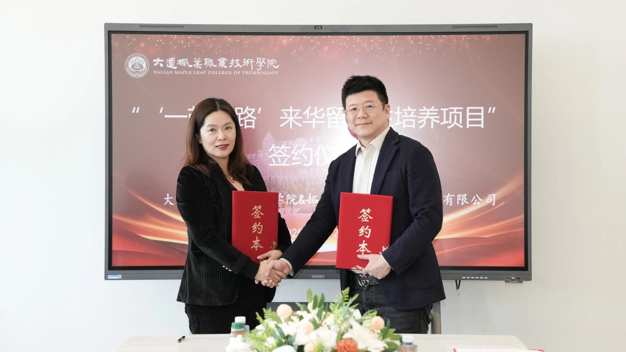 3月25日,我院与拓知出国服务(大连)有限公司在七顶山校区签订了“一带一路”来华留学生培养项目合作协议,开启了国际合作交流的新篇章。