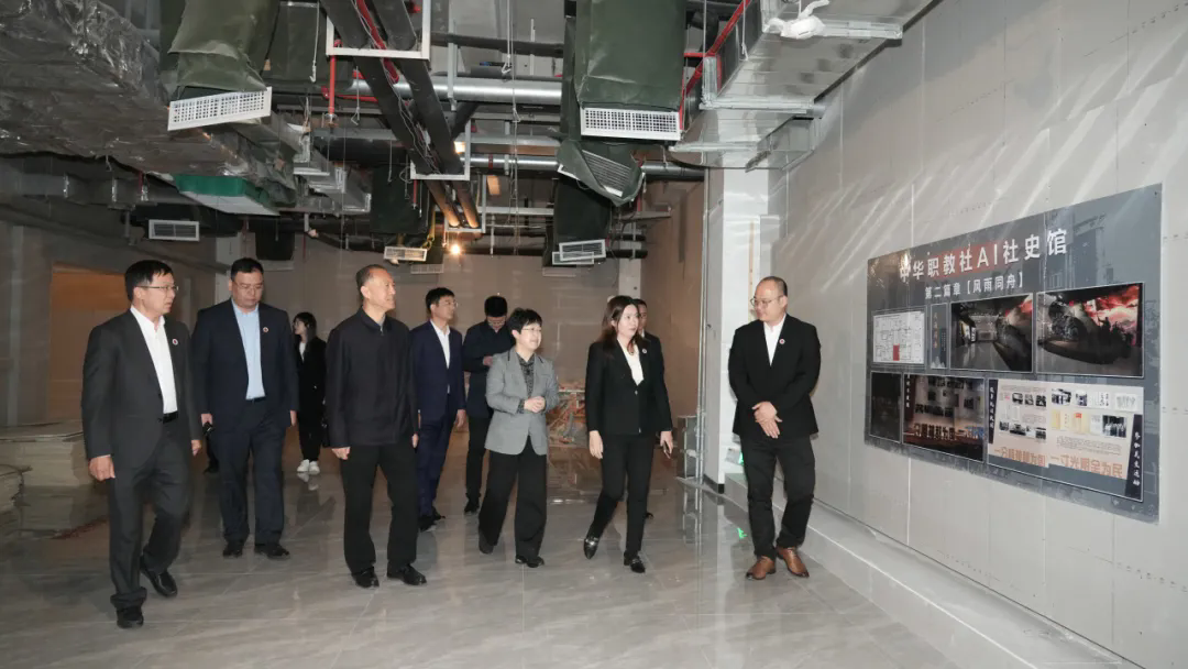随后,郭彩云来到建设中的中华职教社AI社史馆,实地考察项目进度,听取关于规划设计及实施方案的详细汇报。郭彩云充分肯定学院在传承职教文化、推动职业教育创新发展方面的积极探索,并就馆内展陈内容、技术应用等环节提出指导性意见。郭彩云强调,要在中华职教社总社的指导下,充分发挥大连枫叶职业技术学院人工智能方面的优势作用,将AI赋能职教历史,打造集科技、教育、展示、研究于一体的现代化社史馆,使其成为传承职教精神、展示职教成果的重要窗口。