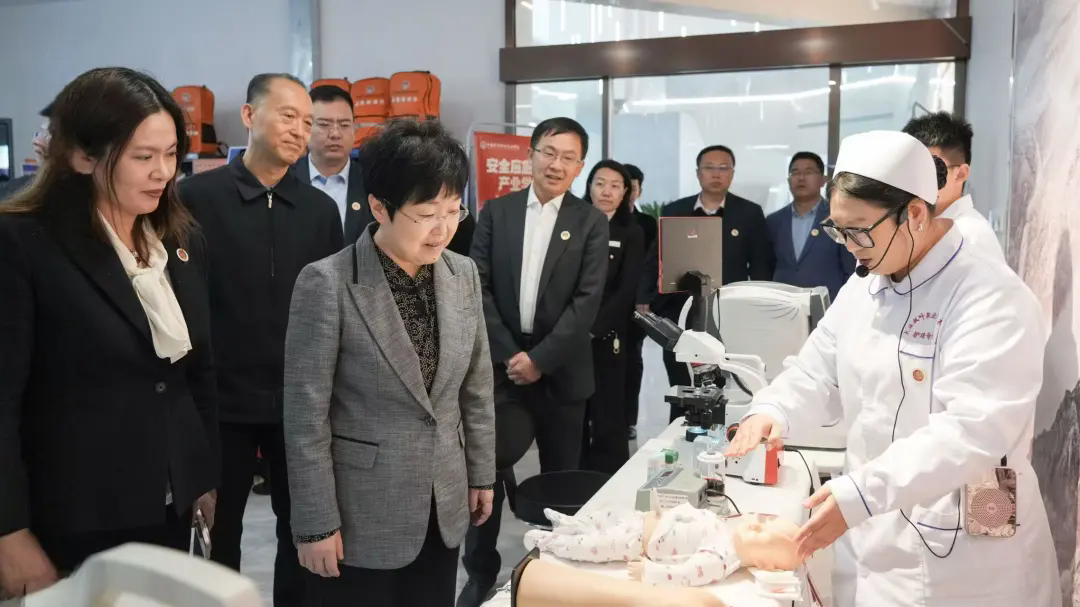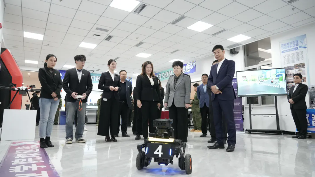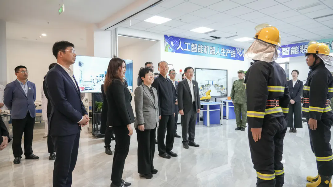 调研首站,郭彩云一行走进学院图书馆一楼的专业成果展区,先后听取视察护理产业学院、安全应急管理产业学院、智能装备与信息系、智能互联网产业学院、低空经济产业学院、数字经济产业学院、密码产业学院及经济管理与服务系师生的汇报展示,不时驻足与师生深入交流、亲身体验,详细了解学院专业建设、人才培养、文化传承等方面的实践成果,对学院特色专业建设与特色人才培养给予高度评价,认为学院在产教融合及技术技能人才培养方面形成了具有示范意义的育人经验。