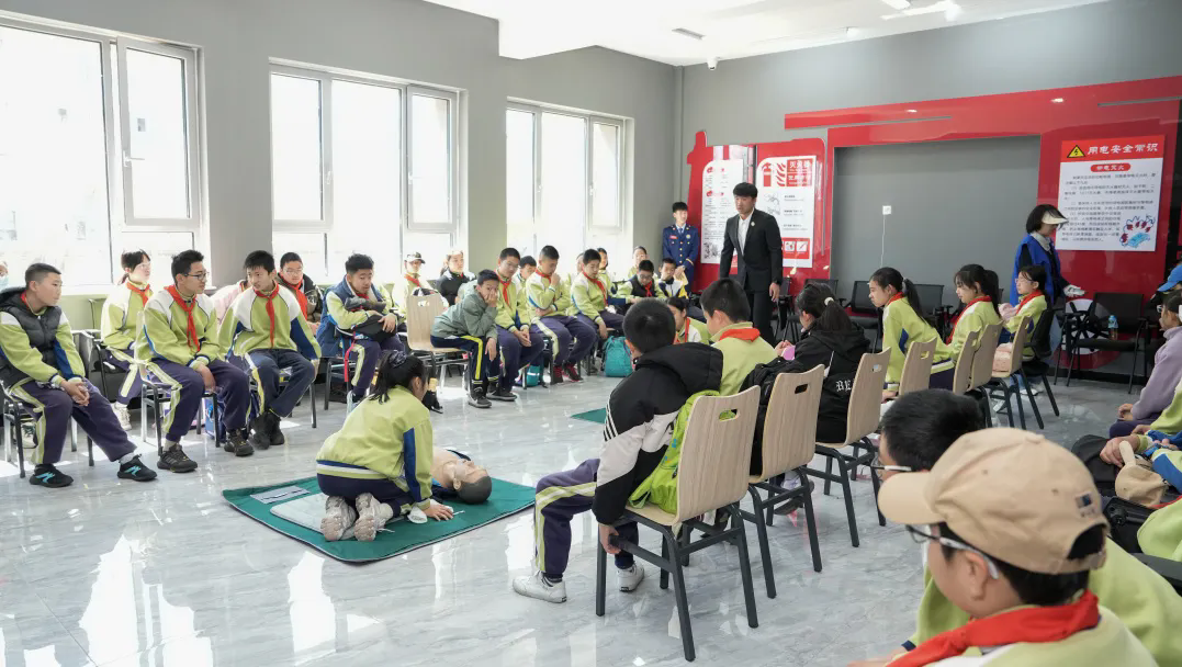 “遇到火灾时,湿毛巾要折叠几次才能有效过滤烟雾?”在安全应急体验馆,孩子们通过VR模拟火灾逃生场景,在烟雾弥漫的虚拟楼道中掌握弯腰低姿、捂鼻前行的正确姿势。地震模拟平台前,孩子们亲身感受不同震级的震动,学习“伏地、遮挡、手抓牢”的防震三要素。心肺复苏实操环节,专业导师手把手指导,孩子们认真地在模拟人上练习按压节奏,“1001、1002……”的计数声此起彼伏。