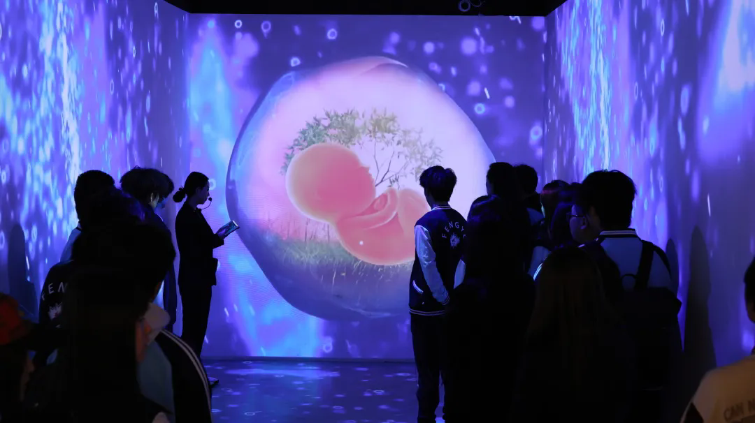 青春的活力与廉洁的庄重相互交融,在这里,3D裸眼交互技术营造出奇幻的氛围,让大家仿若置身于生命起源的探索旅程,深刻领悟到生命的纯粹与珍贵。滑轨触控显示屏上,一个个孝爱美德故事如璀璨星辰,照亮了同学们寻觅人生志向的道路。
