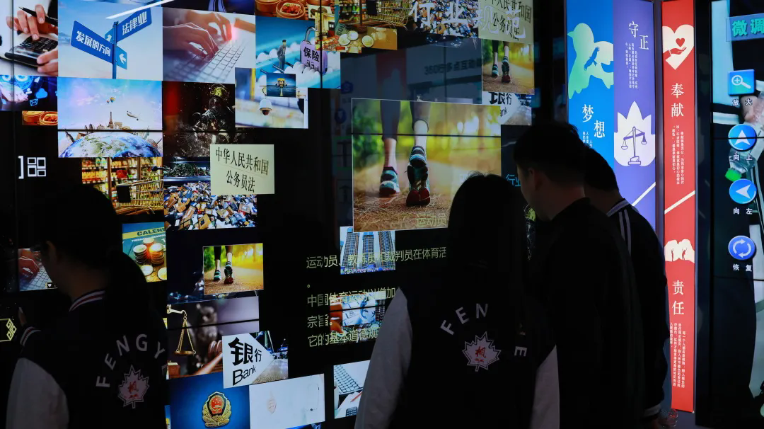 在党史教育展区,同学们触摸着石墨烯魔法墙,从 “红船曙光” 出发,回溯党的百年辉煌历程 。从党的思想理论创新,到不同历史时期的反腐工作,每一段历史都深深震撼着大家的心灵 。