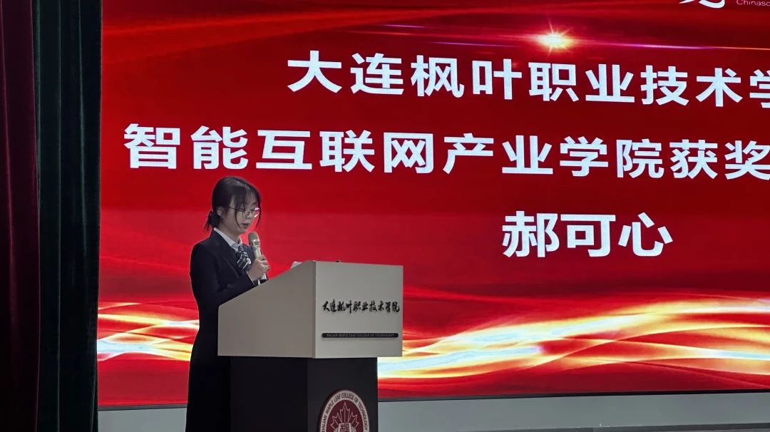 学生代表2024级物联网三班郝可心同学发言,她表达了对学院和老师的感谢,分享了自己在学习和生活中的感悟,鼓励同学们以获奖者为榜样,努力拼搏,争取优异成绩。
