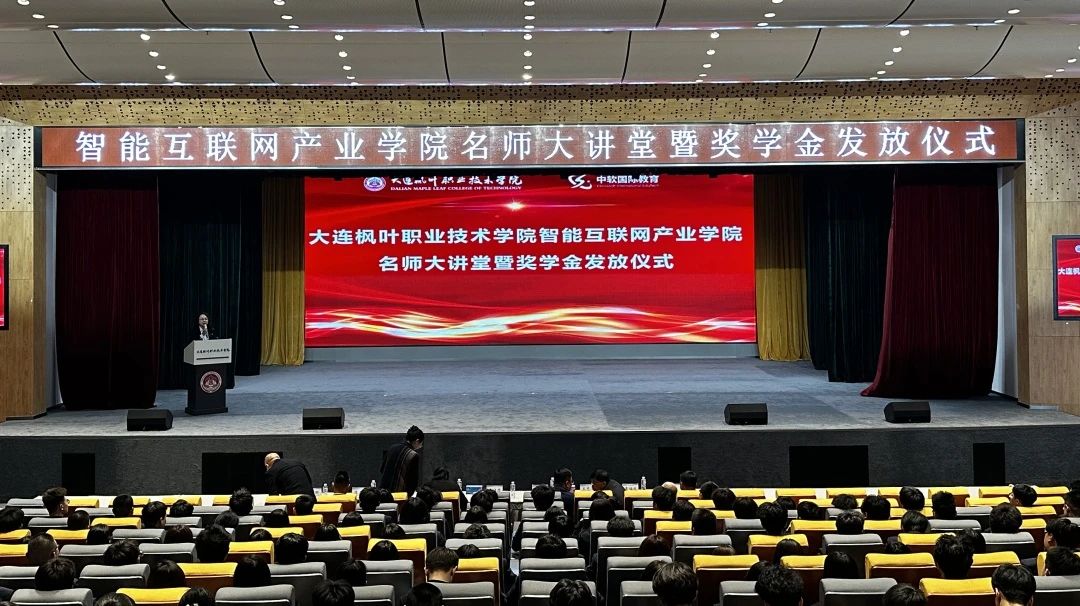 4月23日,大连枫叶职业技术学院七顶山校区图书馆二楼报告厅内气氛庄重而热烈,智能互联网产业学院在这里隆重举行“名师大讲堂暨奖学金发放仪式”。本次活动旨在为同学们提供职业发展的指导,同时表彰过去一学期中表现优异的学生,激励全体同学奋发向上,追求卓越。