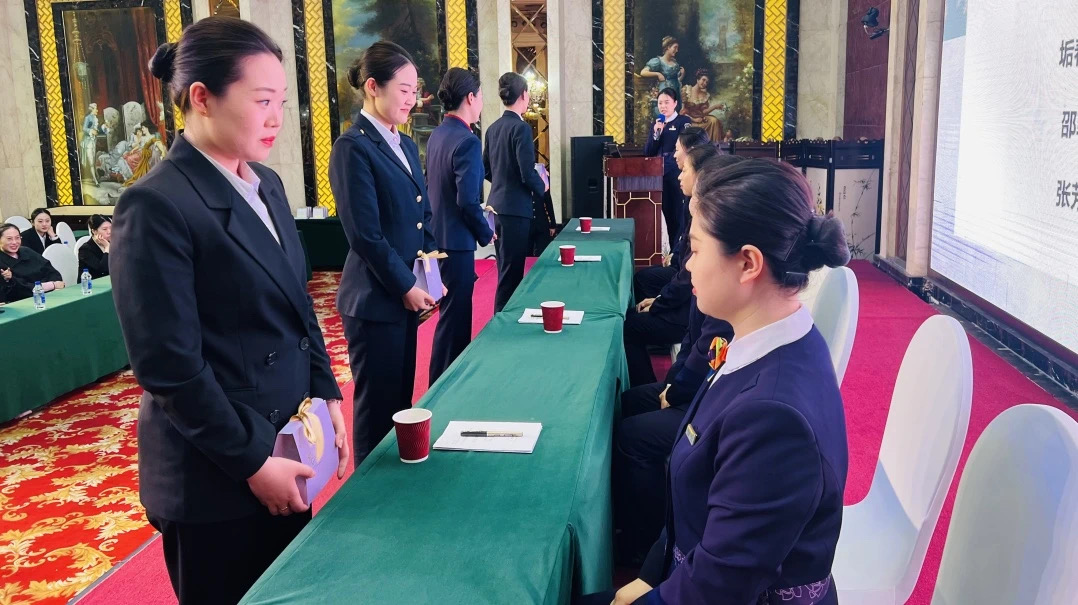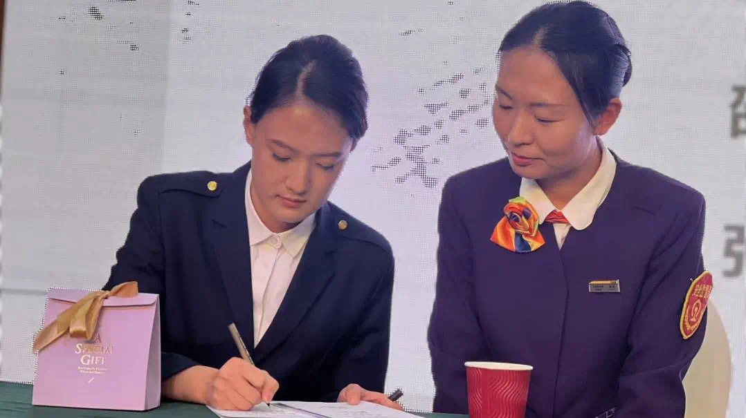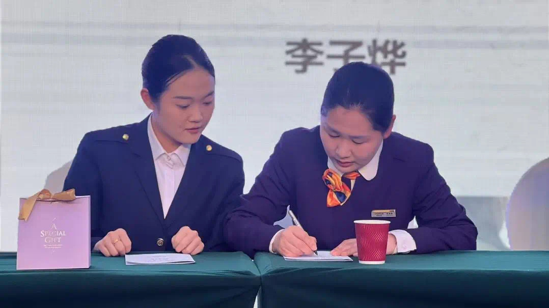 进入拜师仪式的核心环节。沈阳铁路局精心挑选的资深乘务人员、业务骨干作为师傅们依次上台,与各自的徒弟面对面站立。徒弟们怀着崇敬之情,向师傅们敬献 “拜师茶”,并郑重地签署师徒协议。这一传统而庄重的仪式,不仅是对师徒关系的正式确立,更象征着铁路行业精神与技艺的传承。