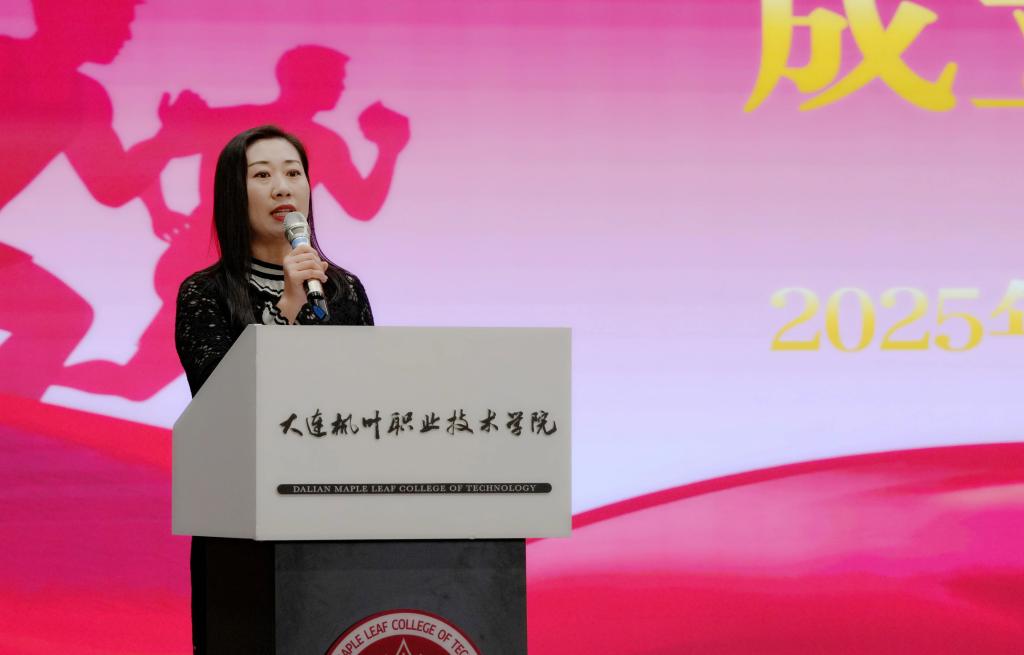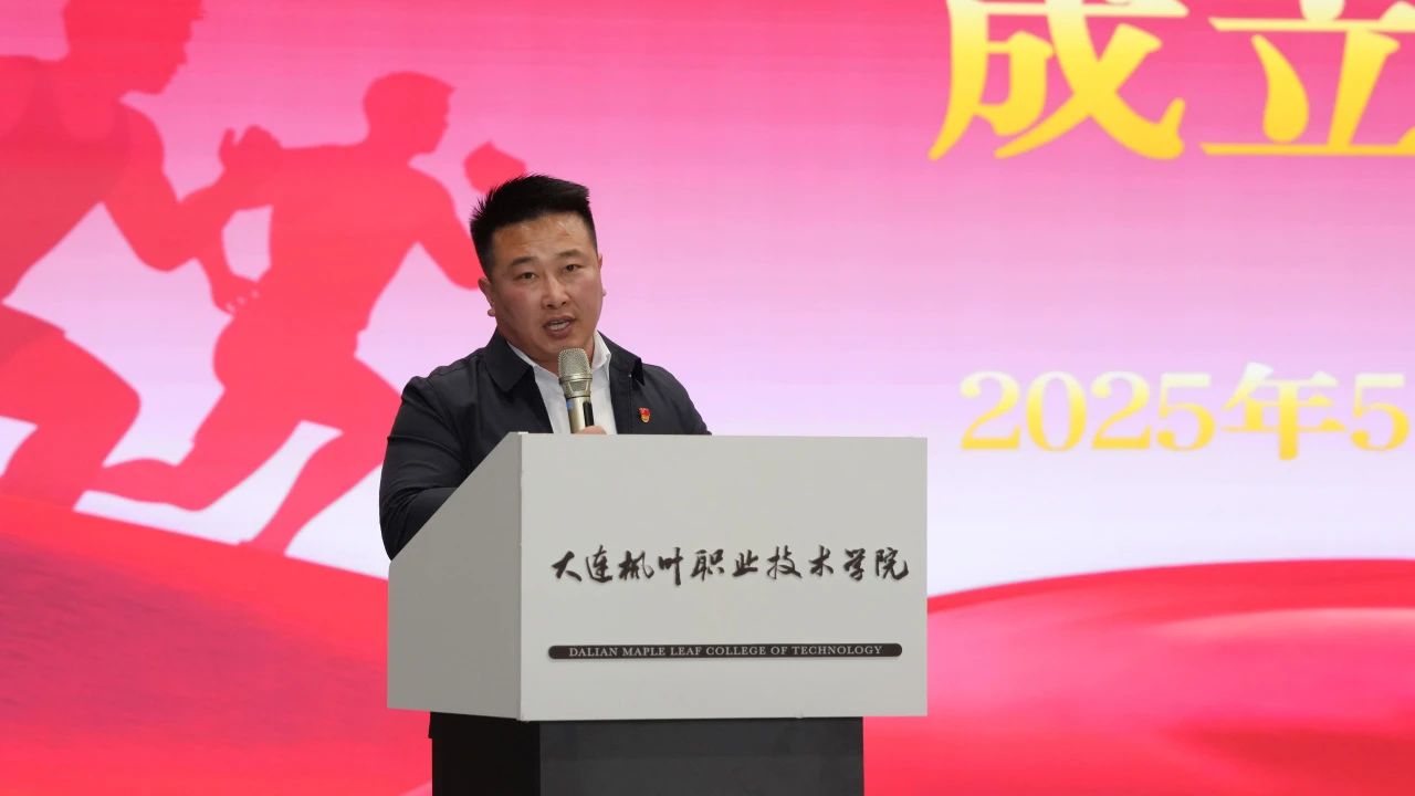 大连枫叶职业技术学院党委书记、院长杨捷发表讲话。他首先代表学院向今天参会人员表示热烈欢迎,向长期以来关心支持我院体育、国防教育的事业发展的各级领导、各界朋友致以最诚挚的感谢!他表示国防体育是国防教育与体育运动的有机结合,是培养全民国防意识、提升国民身体素质、强化爱国主义精神的重要途径。我院始终坚守立德树人的根本任务,将国防体育深度融入人才培养全过程,以培养兼具家国情怀、过硬军事素养与强健体魄的新时代人才为目标。构建起贯穿教学、训练、行实践的全链条国防教育体系。把国防体育作为厚植学生爱国情怀、锤炼意志品质、筑牢强军根基的重要抓手,切实将其打造成为学院特色运营工程的核心支柱。