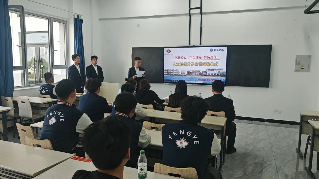2025年5月9日为认真做好入党积极分子的培养、教育工作,增强责任感、使命感,对于提高党员队伍的素质,实施“从严治党 ”,践行“ 四讲四有 ”,具有十分重要的意义。因此,今天智能装备与信息系党支部在11号楼108举行入党积极分子宣誓仪式。