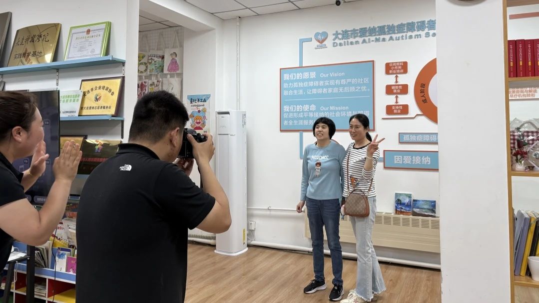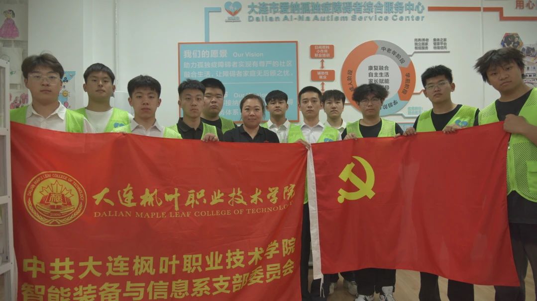 2025年5月28日大连枫叶职业技术学院智能装备与信息系党支部组织员张玲玲老师、辅导员刘元丁老师带领2023级入党积极分子同学走进大连爱纳孤独症综合症障碍者综合服务中心。在志愿活动中,我们为“爱纳 ”的孩子们拍摄全家福,希望用镜头定格他们幸福势、调整表情。有的孩子起初有些害羞,在志愿者的鼓励下,逐渐放松下来,露出了灿烂的笑容。一家人依偎在一起,眼神中满是爱意,那温馨的画面让人动容。每一次快门的按下,都是幸福的定格,都是爱的见证。通过为孩子们拍摄全家福、上计算机课,我们不仅给予了他们关爱和知识,也收获了满满的感动和成长。未来,我们将继续秉持志愿服务精神,用爱温暖更多的人,让志愿之花绽放在每一个角落。
