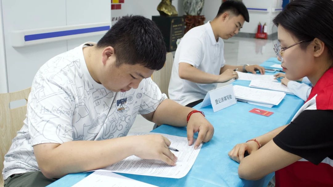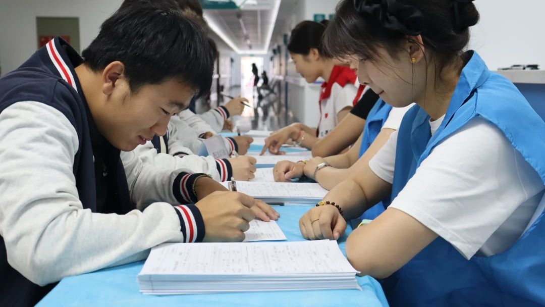 在献血现场,同学们有序排队,依次进行登记、体检、初筛等流程。志愿者们全程协助工作人员,引导同学们完成各个环节,确保献血过程有条不紊地进行。现场气氛热烈而温馨,同学们脸上洋溢着自豪的笑容,纷纷表示能够为社会贡献自己的一份力量,感到无比光荣。
