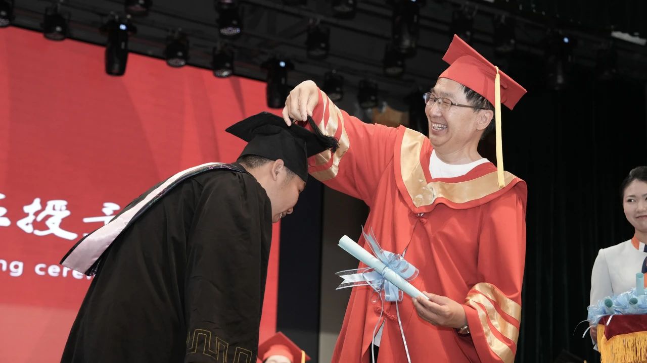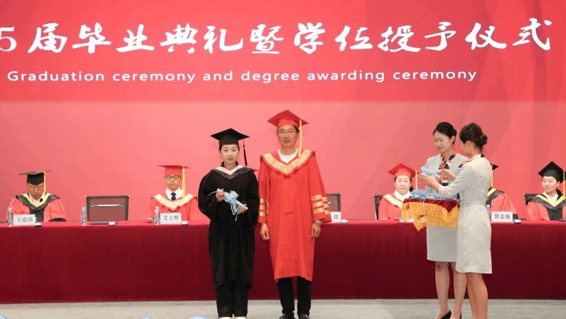 ▲学院党委书记/院长杨捷为学生授予本科学士学位