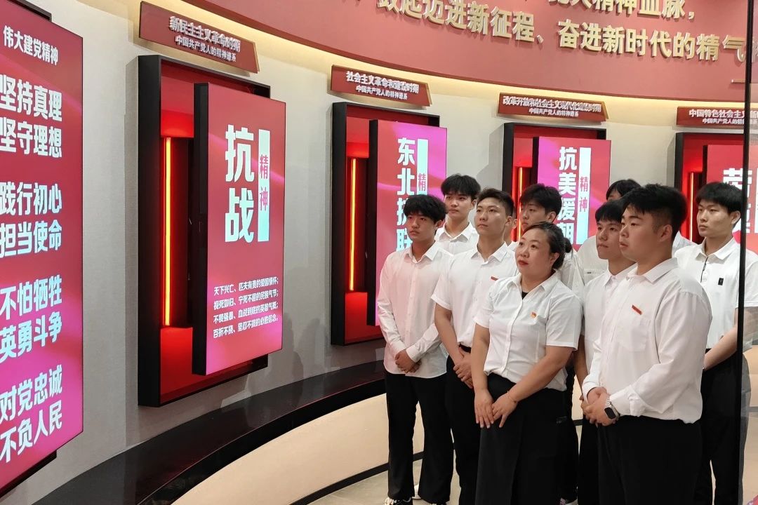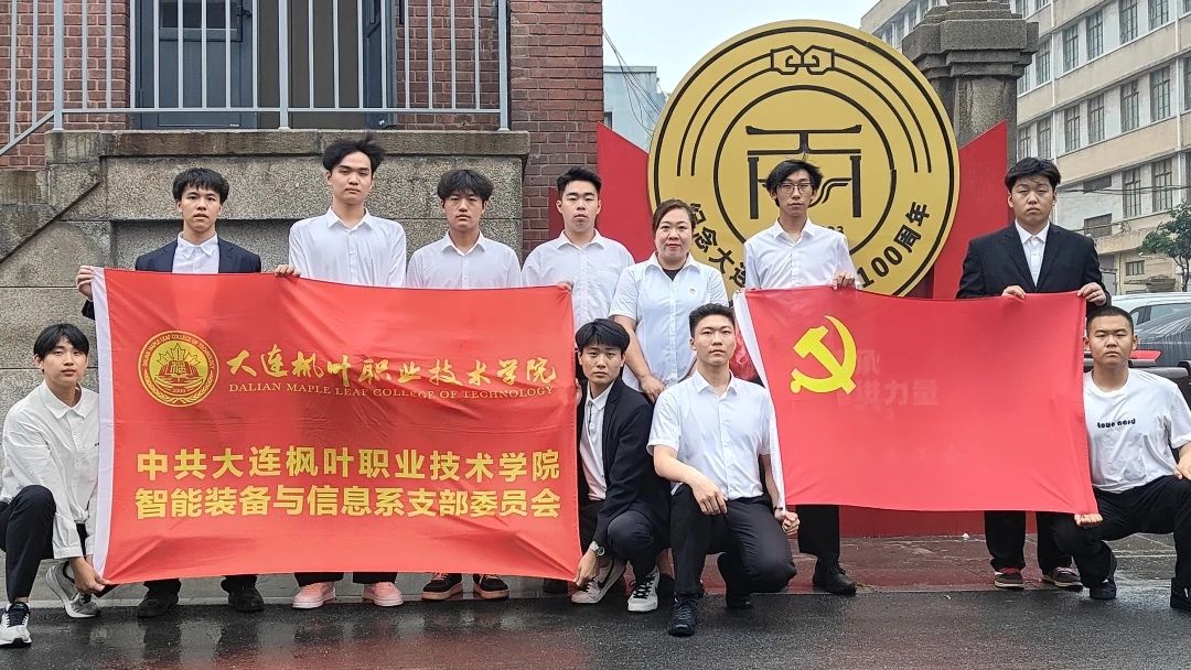 在七一党的生日即将到来之际,大连枫叶职业技术学院智能装备与信息系党支部党员教师张玲玲带领2024级入党积极分子同学们怀着崇敬之情走进四·二七大罢工史迹陈列室。