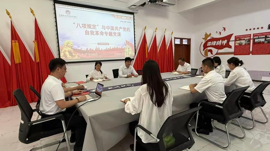 为深入学习贯彻党的二十大精神,持续推进全面从严治党向纵深发展,进一步加强党员教师的纪律意识和作风建设,近日,学生工作第一党支部书记王博为支部党员教师带来了一堂主题为“八项规定”与中国共产党的自我革命的专题党课,引发热烈反响。