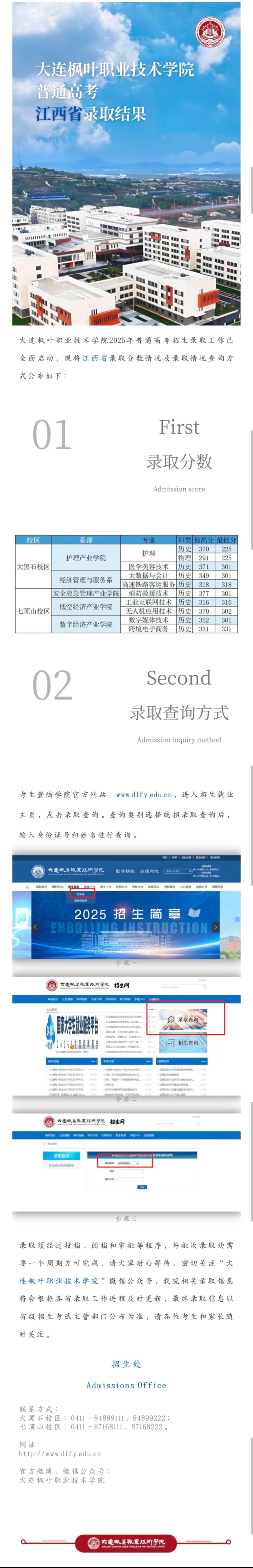 权威发布|大连枫叶职业技术学院2025年江西省录取结果及查询方式发布!