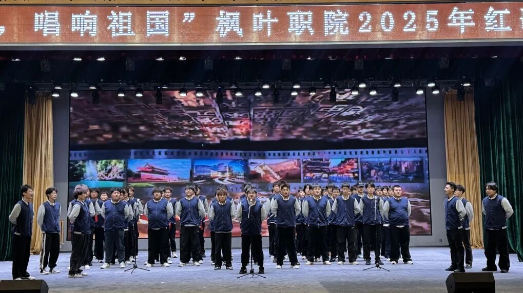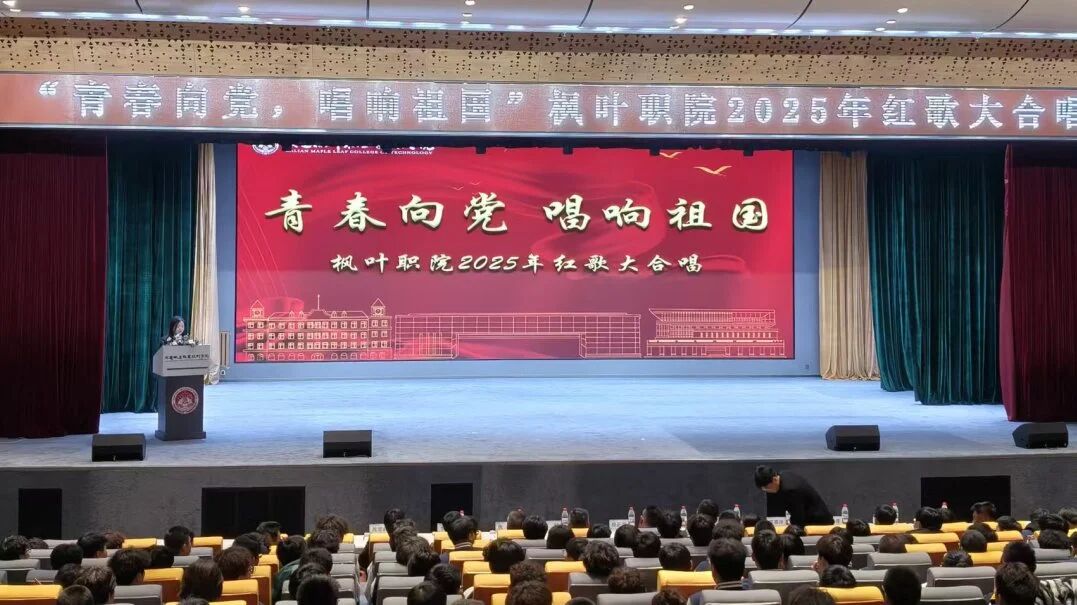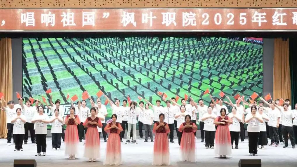 当熟悉的红色旋律在校园上空回荡,当青春的歌声与爱国的赤诚撞个满怀,一场属于热血青年的红色盛宴正式画上圆满句号。10月23日晚,“青春向党・唱响祖国”枫叶职院2025年红歌大合唱比赛在七顶山校区报告厅隆重举行,全体师生以歌为媒、以声传情,用最昂扬的姿态,向祖国母亲献上最深情的告白。