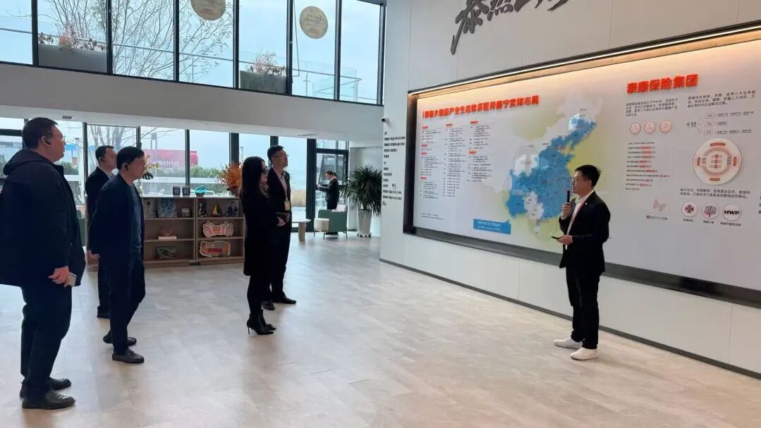 在泰康之家・虎滩湾,企业市场营销部养老社区总监张彦博、市场营销部养老规划柳骏,全程陪同学院领导参观产品体验中心,重点考察社区智慧平台、医养融合系统及样板间等核心功能区,详细介绍养老社区规划布局、设施建设、运营管理模式及“智慧养老”服务实践成果。学院领导对企业在绿色环保与智慧康养领域的创新实践给予高度评价。座谈会上,双方围绕养老与医疗融合路径、职业教育实训基地建设、养老服务模式创新、校企人才联合培养及产业未来布局等议题深入交流,达成多项共识。
