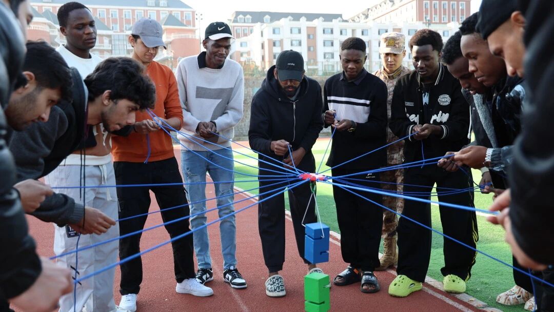 深秋的大连,微风拂面,阳光和煦。上午九时许,留学生们便已精神抖擞地集结在操场上。在专业拓展教练的指导下,大家迅速分组,投入到拓展项目中。“合力筑塔”、“珠行万里”、“一圈到底”等一系列趣味性与协作性兼具的游戏,迅速点燃了留学生们的热情。操场上,不同肤色的面孔洋溢着同样的笑容,大家为了共同的目标出谋划策、默契配合,加油声、呐喊声、欢笑声此起彼伏,汇成了一曲青春与友谊的交响乐。