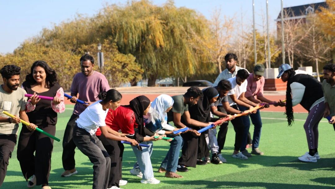 11月14日上午,大黑石操场上彩旗飘扬,欢声笑语不断。一场别开生面、活力满满的留学生实训拓展活动在此火热开展。学院院长辛赏月、学生管理副院长姜占原、教学副院长蔡丽丽及辅导员李柏汲、刘晓萌亲临现场,与留学生们共同参与了这场充满乐趣与挑战的盛会。