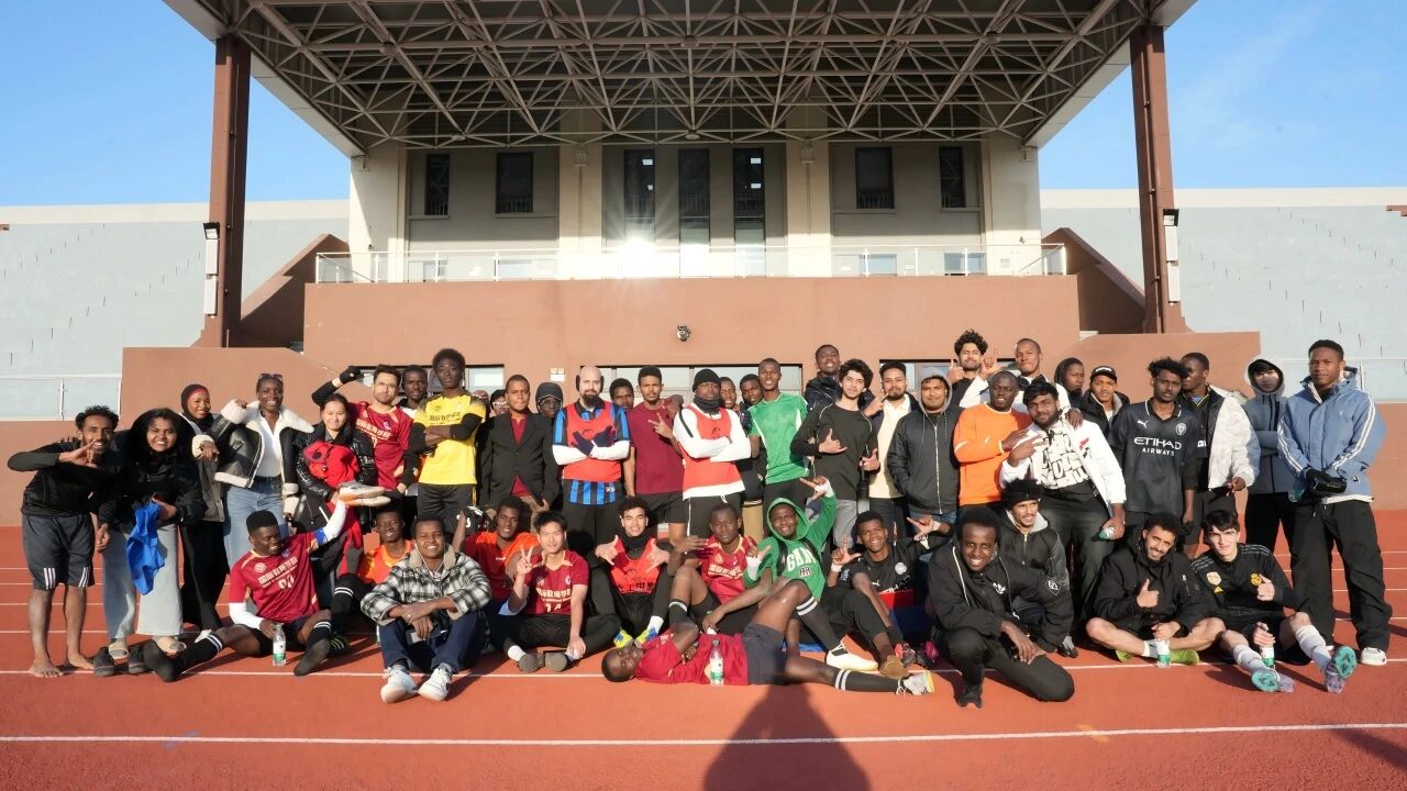 绿茵场上,双方球员身着队服,斗志昂扬。精准的传球、迅猛的突破、果断的抢断、奋力的扑救,每一个动作都尽显专业与热情。球员们在奔跑中挥洒汗水,在对抗中切磋技艺,用默契的配合和顽强的拼搏,诠释着对足球运动的热爱,也让现场观众的欢呼与呐喊此起彼伏,充分展现了留学生们的青春活力。