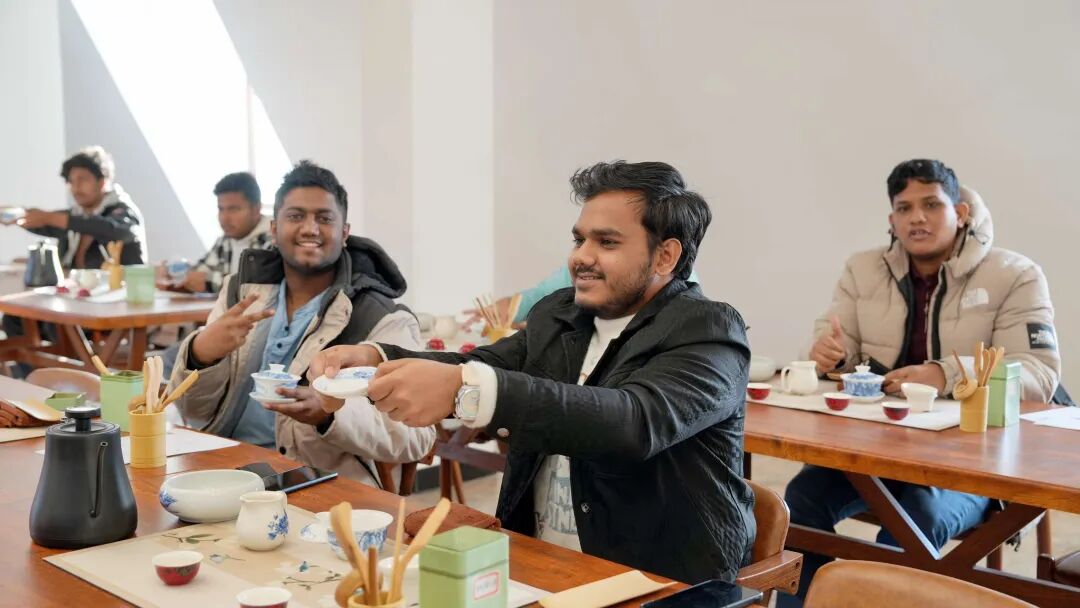 在老师的悉心指导下,留学生们纷纷动手实践。他们模仿着老师的动作,体验着从茶叶到茶汤的神奇转变。当一杯杯色泽红艳、香气四溢的红茶从自己手中诞生时,大家的脸上都洋溢着成功的喜悦与自豪。他们轻嗅茶香,细品茶汤,在氤氲的茶气中,感受着中国茶文化“静心、修身、养性”的深邃内涵。
