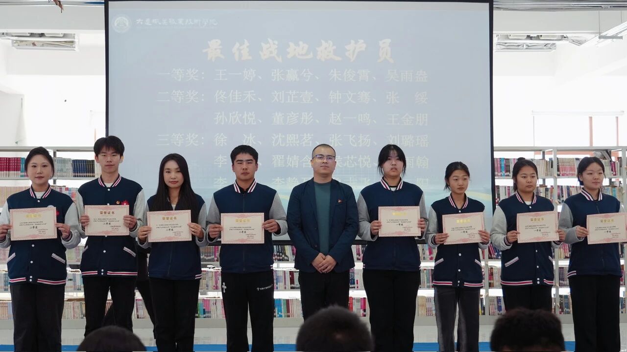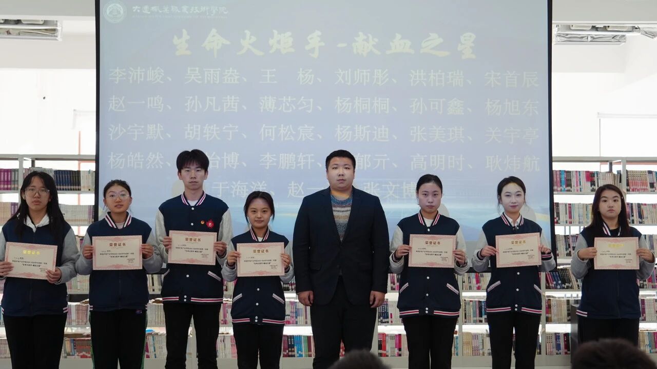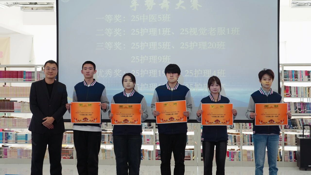 颁奖环节成为大会亮点,涵盖校园活动、大赛竞技、志愿奉献等多个维度。红歌比赛、手势舞大赛、快闪集赞等校园文化活动中,25护理3班、25中医5班等优秀班级及个人脱颖而出;“枫叶校园-创美达人”志愿行动中,宋婉溶等同学用创意点亮校园;“生命火炬手-献血之星”荣誉授予李沛峻等27名在无偿献血中表现突出的学子,彰显青年担当;大连市国防体育锦标赛与省护理大赛中,王一婷、张赢兮等同学凭借过硬本领斩获佳绩。