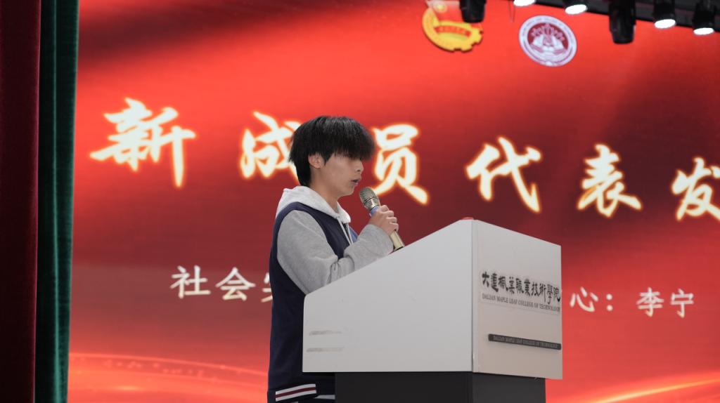 新成员代表李宁上台发言,言辞恳切真挚,既表达了对学生工作的热忱期盼,更坚定表态将以初心践行责任、以实干锤炼本领,全力以赴履行岗位职责,为学院发展贡献青春力量。