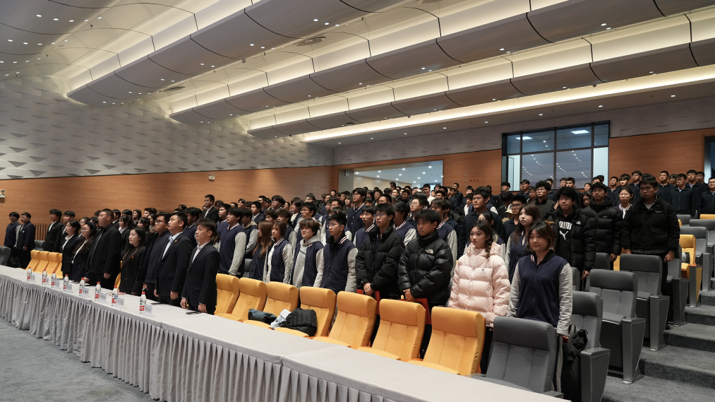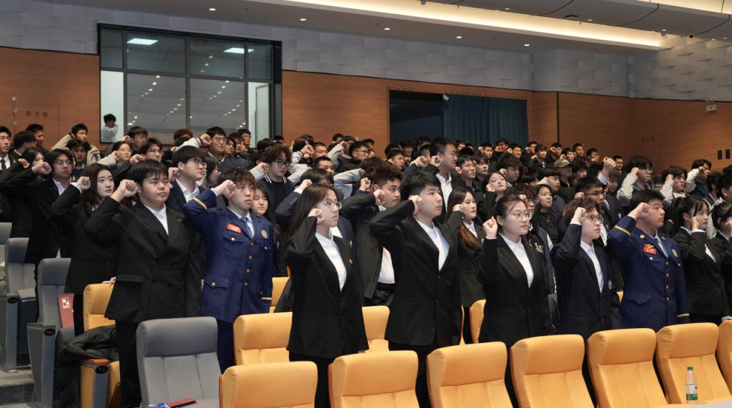 国歌奏响,全场师生肃立致敬,铿锵旋律承载青年赤诚与使命担当,新聘学生干部将以青春践行责任,护航学院发展,续写奋进答卷。