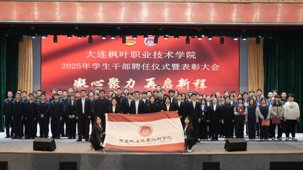 11月25日,大连枫叶职业技术学院七顶山校区以“凝心聚力,再启新程”为主题的2025年学生干部聘任仪式暨表彰大会在报告厅召开。以仪式致敬担当,以表彰凝聚力量,全面总结学生工作成效,部署后续发展任务。