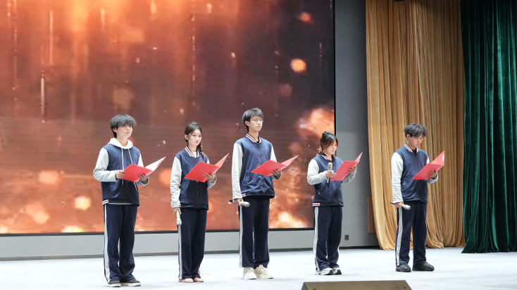 校学生会各部门代表朗诵《青春的诗》,以激昂语调与真挚情感彰显青春担当与奋进力量,展现枫叶学子昂扬风貌,为大会注入青春气息。