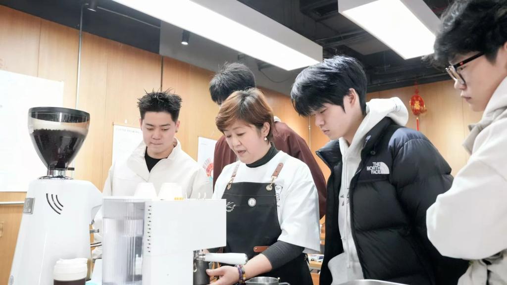 理论学习“沉浸式课堂”全是“干货”。讲豆种,学生分组对比阿拉比卡与罗布斯塔实物;聊处理法,现场闻日晒、水洗咖啡豆香气差异;学感官评价,边品浅烘果香、深烘巧克力等风味咖啡,边用“醇厚度像牛奶与水”的比喻理解专业词。导师更直接关联实操:“浅烘豆做手冲,深烘豆练拉花”,让知识学得快、用得上。