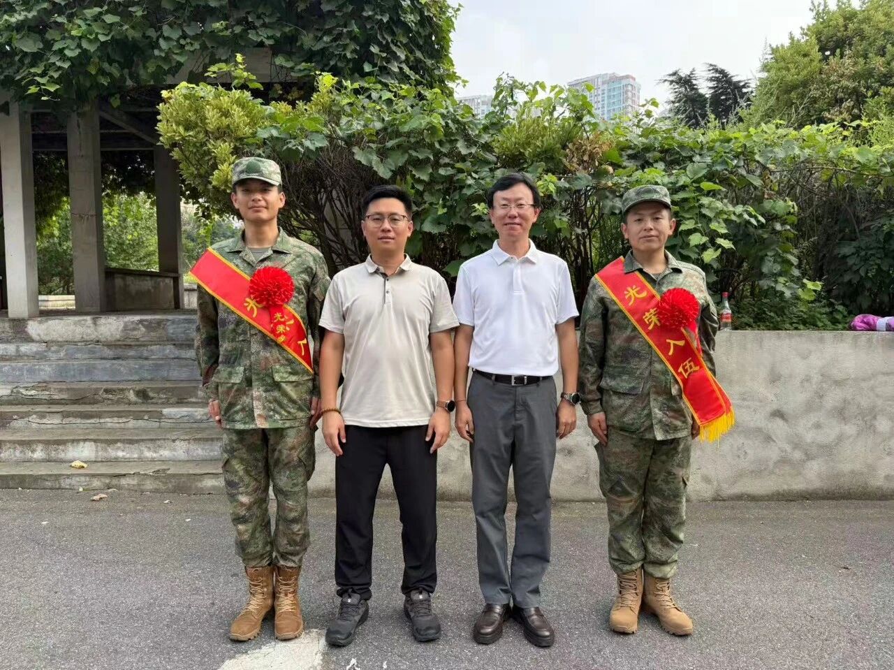 任赫喆同学(右一)与同期入伍同学及老师合影