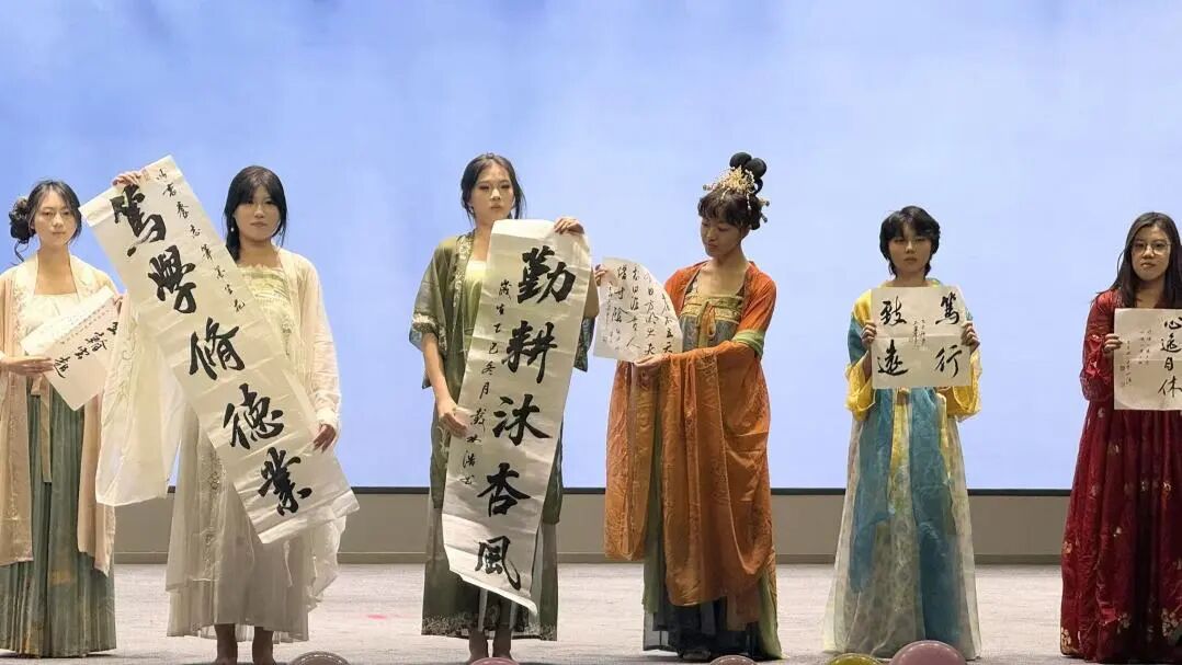 晚会现场,15个精品节目依次登场,涵盖歌舞、器乐、朗诵、走秀、情景剧等多种形式。九鼎社团、街舞社团、枫叶“政”红等多个社团及学生代表轮番献艺,既有《大家一起喜羊羊》、《雨爱》等歌舞表演带来的青春律动,也有《别怕变老》的温柔治愈,还有汉服与书法社团融合演绎的传统文化展示、《这盛世如你所愿》朗诵的家国情怀抒发,动漫社团二次元走秀、手语社团《感恩的心》等节目也各具特色,期间的游戏互动环节更是惊喜不断,将现场氛围一次次推向高潮,全方位展现了枫叶学子的多元风采与蓬勃朝气。